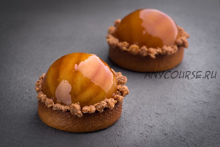 Миндальный крем, надежное песочное тесто, запечённые яблоки собраны в купол с помощью пектина и покрыты глазурью из яблочного сока с карамелью.