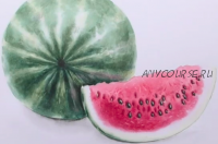 ? Осваиваем навык работы мокрым по мокрому. Тренируем плавные растяжки и акварельные размывки цвета, узнаем секреты работы мокрым по сухому. В итоге получаем детальное изображение арбуза со всем мельчайшими подробностями.