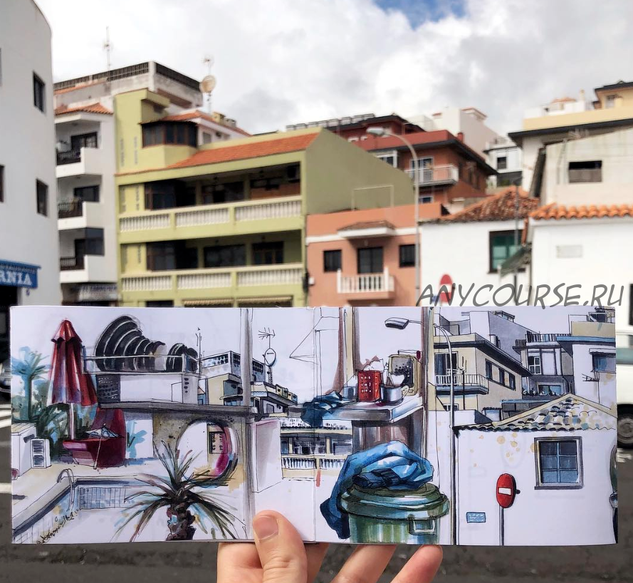 ? «Неизменные виды из домашнего окна или знакомая архитектура по пути на работу... Так многое быстро становится привычным и незаметным для наших глаз. На моем премьерном курсе учимся видеть интересное в обыденном и выражать красоту знакомых пейзажей в скетчах маркерами — делаем это максимально реалистично!»