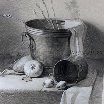 - Сделаем несколько натюрмортов с бытовыми предметами в линии и тоне.