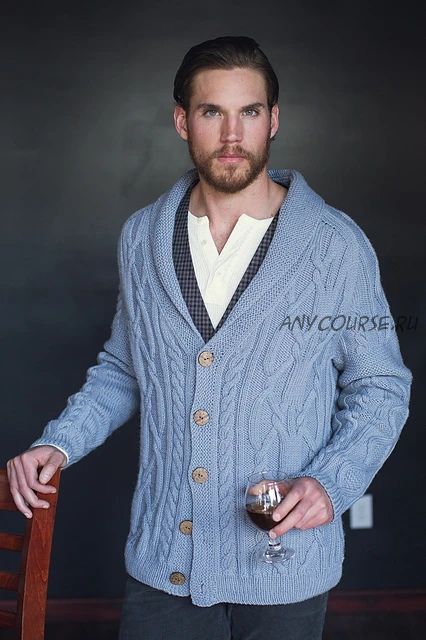 41? (47, 51?, 57)”/106 (119.5, 131.5, 145) cm chest circumference, buttoned. Cardigan shown measures 47”/119.5 cm.