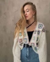 Кардиган oversize, объём изделия можно регулировать, корректируя плотность квадратов.