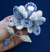 Создадим каркасные лепестки из бархата, лепестки с двусторонний вышивкой, подвижные листья и тонкий изящный стебель.