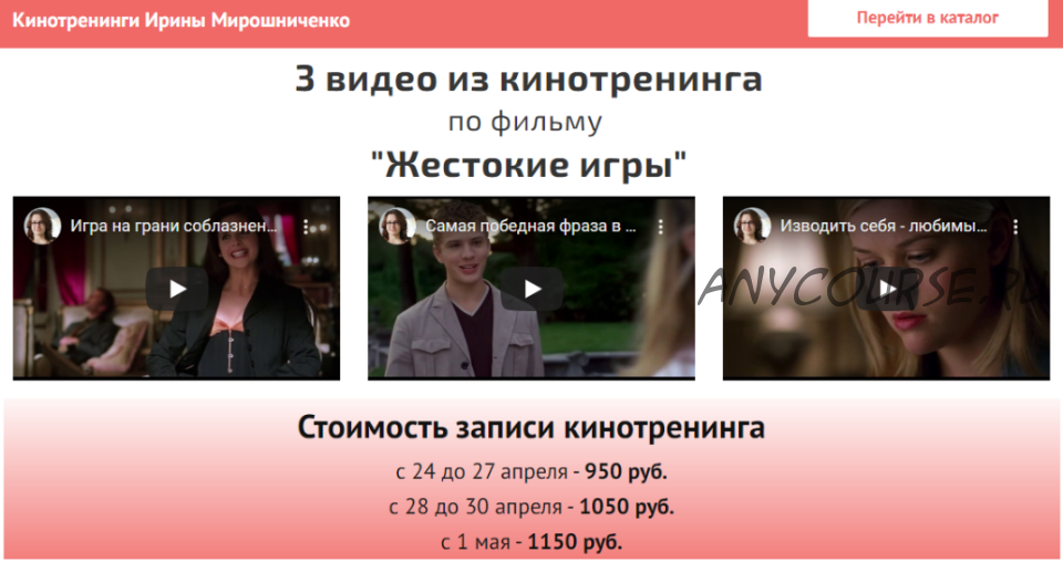 Кинотренинг по фильму «Жестокие игры» (Ирина Мирошниченко)