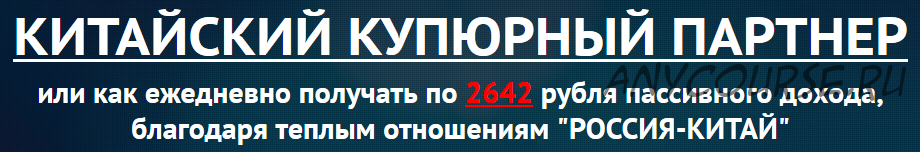 С помощью практических уроков я на наглядном примере покажу, как настроить 4 зарубежных сервиса между собой таким образом, чтобы любой желающий мог ежедневно получать пассивный доход, благодаря финансово крепкому и надежному партнеру - Китаю ! При этом от вас не требуется каких то специальных технических знаний, достаточно лишь 30 минут свободного времени в день.