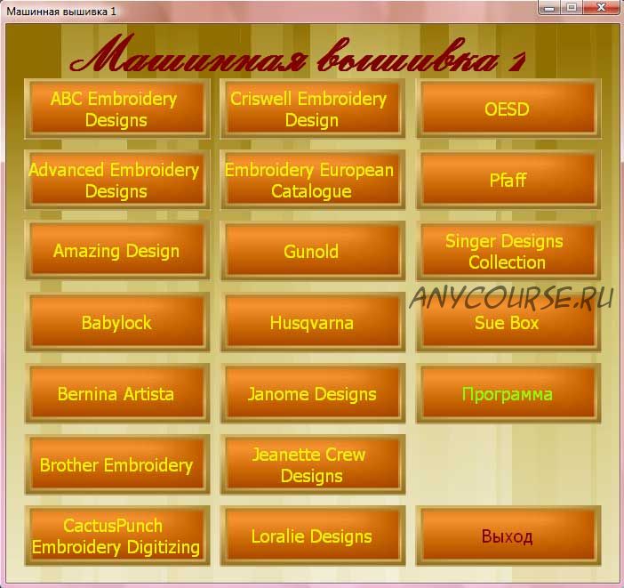 Также на диске записана программа, с помощью которой можно просмотреть любой дизайн и перевести его в формат, с которым работает ваша вышивальная машина.
