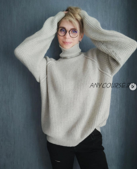 Размер свитера- оверсайз. Прекрасно садится и на 44 и на 46/48. Ширина тела 56см. Длина регулируется. Свитер вяжется снизу вверх. Имеет швы.