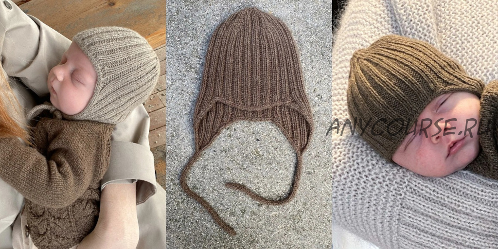 Шапка вяжется от завязок и вверх, без швов. Сначала завязки, ушки и горловина вяжутся поворотными рядами, затем шапка вяжется по кругу. Передняя часть (лоб) формируется с помощью немецких укороченных рядов, а заканчивается шапка полым шнуром по краю горловины и лба.