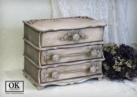 ? На мастер-классе мы создадим изысканный «старинный» комод для украшений с использованием доступных техник и материалов. После посещения мастер-класса Вы сможете создавать винтажные работы, а так же реставрировать и перекрашивать мебель, используя изученные техники. На мастер-классе будут рассмотрены все нюансы работы, даже новичку будет легко сделать качественную и красивую вещь своими руками.