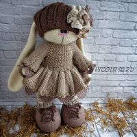 Мастер - класс включает в себя пошаговое описание 5 элементов одежды (шапочка, платье, кофта, штаны, ботинки) для 40-сантиметрового зайчика + изготовление украшений и сумочки.