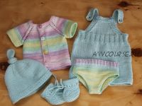 В Мастер - класс входит описание комбинезона , кофточки, шапочки, трусиков и пинеток.