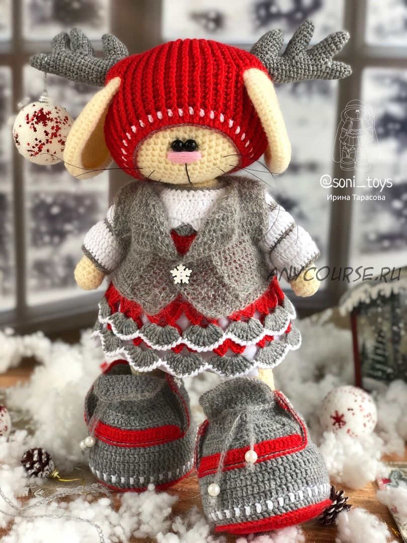 • 5 элементов съемной одежды (платье, трусики, шапка с рогами, ботиночки, жилет) и елка