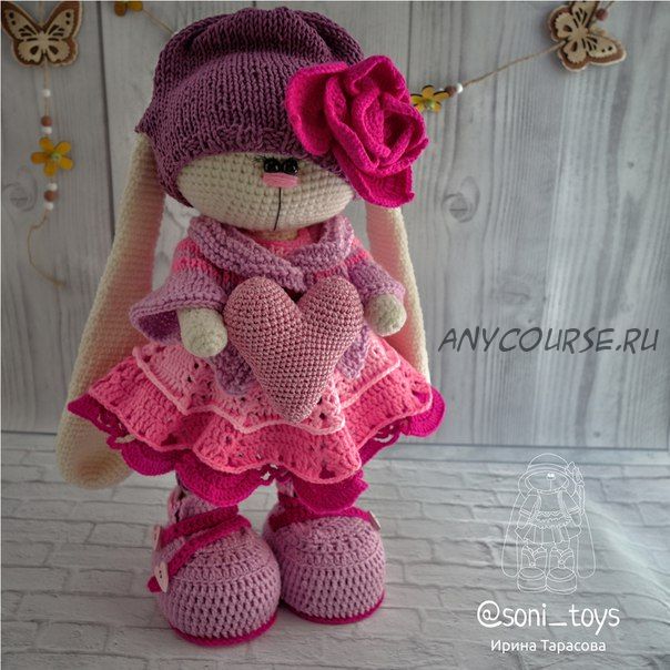 Мастер-класс «КОМПЛЕКТ РОЗИ» состоит из 29 страниц в формате pdf. Включает в себя около 70 фотографий и пошаговое описание 5 элементов одежды (шапочка, платье, кофта, штаны, ботинки) для 38-40-сантиметрового зайчика + изготовление украшения на шапку