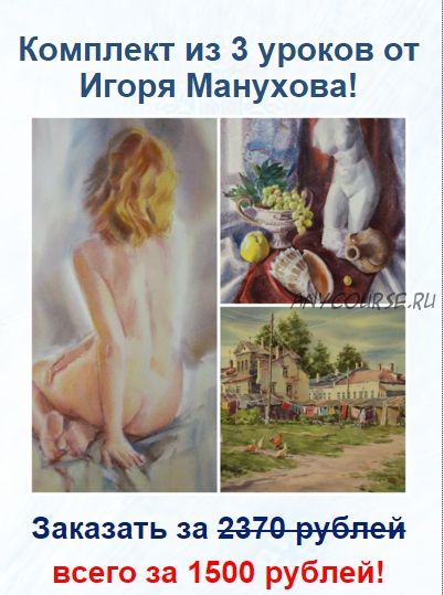 Комплект из 3 уроков + руководство по акварельной живописи (Игорь Манухов)