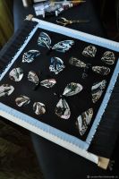 В данный комплект обучающих материалов входят более 180 фотографий процесса вышивки, шаблоны-выкройки и описание материалов для семи насекомых: пяти бабочек и двух жуков. Бабочки вышиваются на шелковой органзе, жуки - на биэластичном бархате.