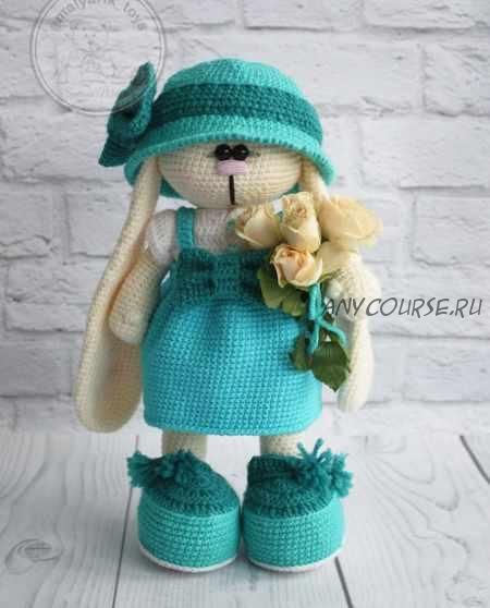Стиль 'Тиффани' - ставка делается на классические вещи. В данном мастер-классе представлен комплект одежды состоящий из: облегающей блузы, пышного сарафана, удобных мокасин, мягких, полосатых панталон и шикарная, обворожительная шляпка с бантом. Данный мастер-класс очень простой. Подойдет даже начинающим. Все полностью вяжется только крючком. Никаких излишеств. Знание базовых петель, пару моточков нити и крючок. Расписан он очень доступно - на 24 страницах, в 2 столбика текста в формате pdf. Включает в себя более 60 фотографий и пошаговое описание 5 элементов одежды для 32-сантиметрового зайчика + мои советы и ответы на вопросы на любом этапе вязания.