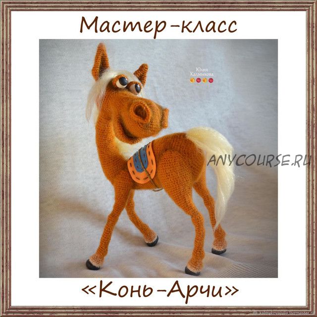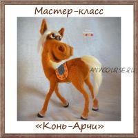 В высоту Арчи 27 см в длину 22 см. Ноги, шея и голова на проволочном каркасе. Копыта и глаза слеплены из полимерной глины. Тонирован сухими тенями и белой масляной краской. Уровень сложности - средний