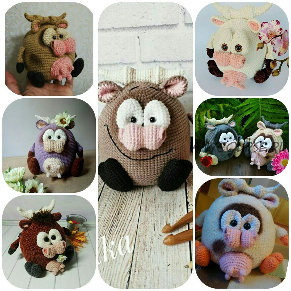 Мастер-класс по вязанию коровки крючком в формате PDF. Содержит подробное пошаговое описание вязания с фото процесса. При использовании указанных материалов получается игрушка размером 15см.