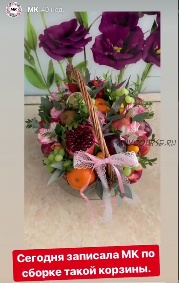 Видео мастер-класс по сборке корзины с фруктами цветами.?