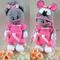 Мастер класс в формате pdf на 35 страницах, подробное описание вязания самой кошечки Анфисы, костюмчика мышки (шапочка, комбинезончик и рюкзачок) со множеством фото и пояснений.