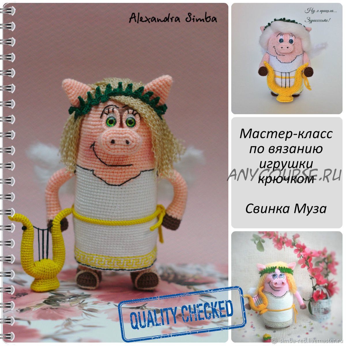 Игрушка крючком Свинка Муза. Муза - это вдохновительница, с которой не забалуешь и не запрокрастинируешь, иначе эта волевая девочка начнет мотивировать под угрозы тяжеленной лиры-арфы. Да так, что мало не покажется!