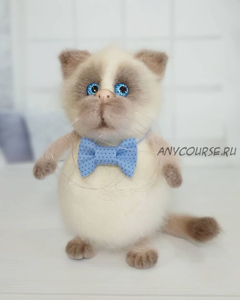 Котик связан крючком из мохера, полностью на проволочном каркасе.
