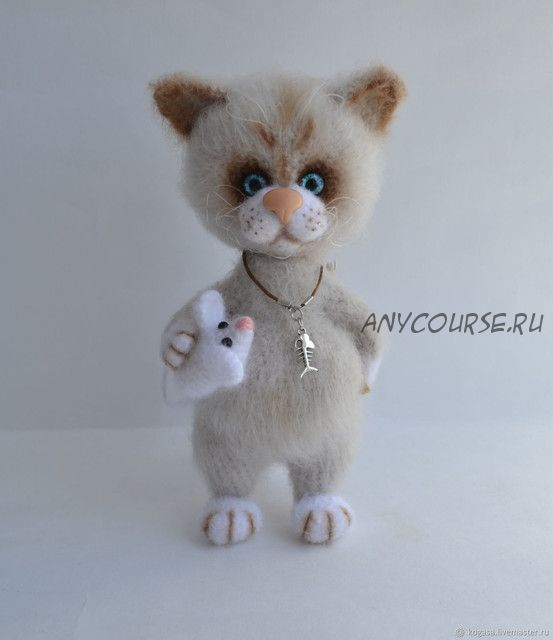 Котёнок связан из пушистой пряжи, стоит опираясь на хвост. Рост 17-18 см. Ни чего не пришивается, всё ввязывается. МК рассчитан на людей, хорошо владеющих крючком и опытом вязания игрушек, не содержит уроков по вязанию.