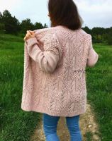 Шикарный кардиган с очень эффектным узором, широкой планкой и спущенной линией плеча: