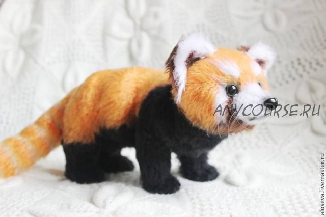 При использовании указанных материалов получается игрушка высотой длину 25 см (без учета хвоста), в высоту 15 см (без учета ушек).