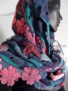 Этот проект имеет среднюю сложность, но требует большого внимания. Конструкция этого рисунка позволяет менять размеры шарфа. Вы можете легко сделать его тоньше / шире и длиннее. Этот шарф связан без швов. Короткий шарф можно закрыть с помощью броши или булавки, во время вязания последней полосы,