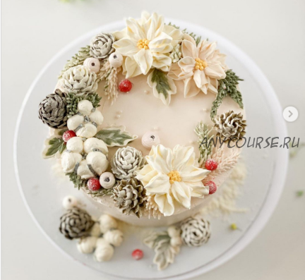 научитесь создавать из крема : шишки, хлопок, ягоды, остролист, пуансеттию, хризантемы, хвою