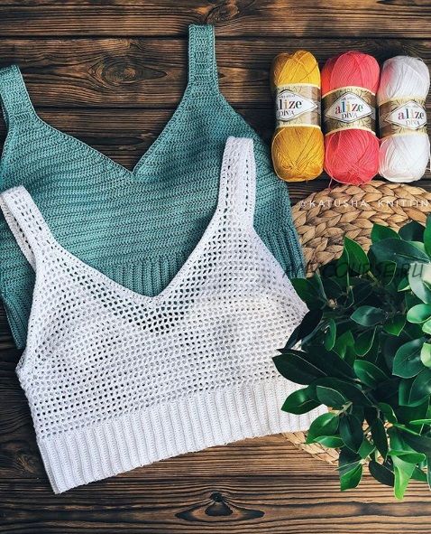 В одном описании вы наи?де?т две модели топа, одна связана столбиками с накидок, вторая сеточкои?