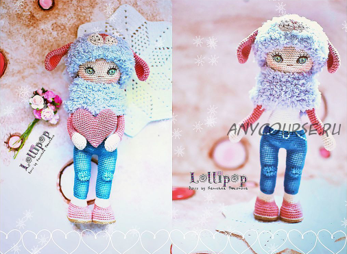 Включает в себя описания вязания тела куклы, шапки-собаки, снуда, рисование глаз.
