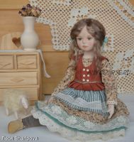 ? Дорогие мастерицы! Предлагаю Вашему вниманию МК по созданию девочки-пастушки из трикотажа с нуля до готовой куклы! Вместе со мной Вы сделаете куколку ростом 37 см, которая будет сидеть без опоры, с поворотной головой, с пальчиками на проволочном каркасе, сошьете частично съемную одежду, сделаете овечку. Основа лица слеплена из запекаемой полимерной глины. Голова обтянута трикотажем.