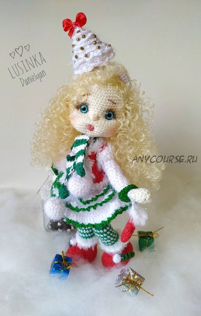 Заменив расцветку, Вы можете связать не только новогоднюю девочку, но и куколку в любом образе.
