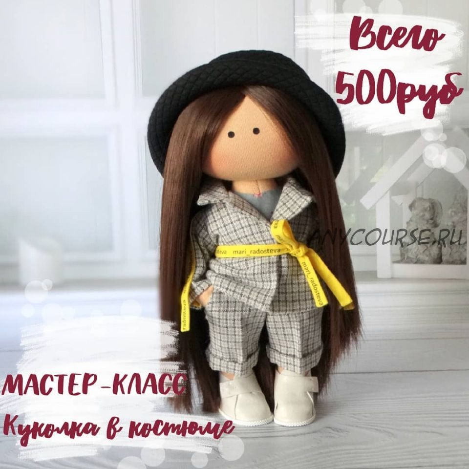 В него входит ВСЕ! Пошив тела, пришивание трессов, пошив костюма, шляпки, изготовление обуви и рюкзачка!Раскрою все секреты!