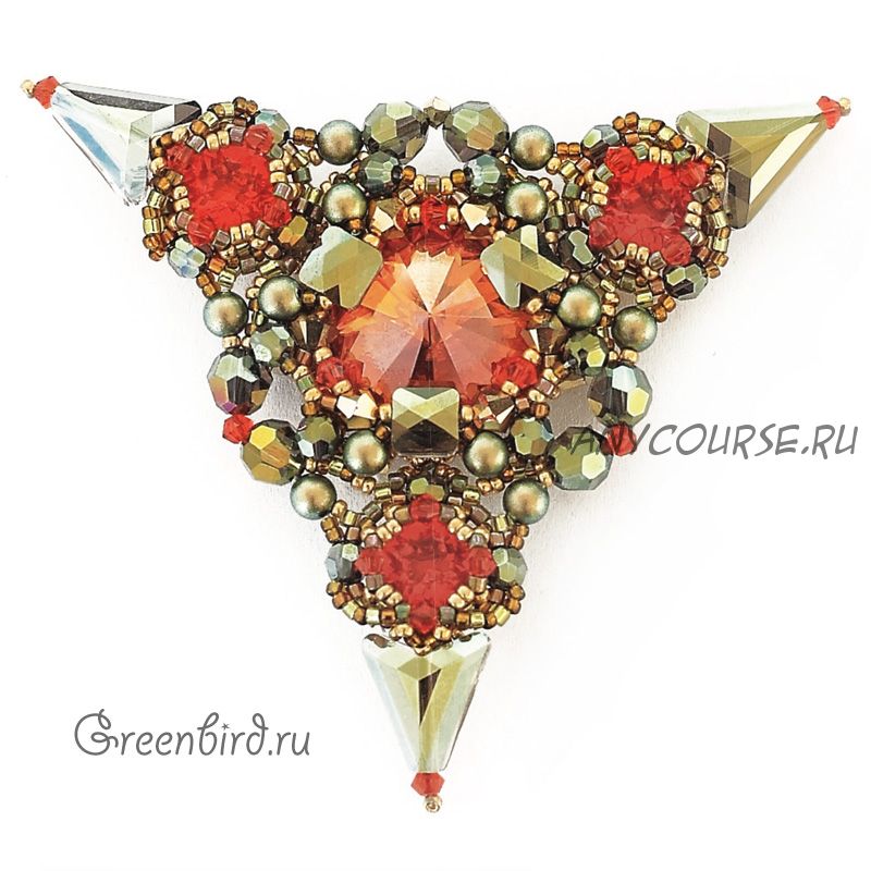 Вы покупаете инструкцию в формате .pdf с пошаговыми фотографиями и схемами, следуя которым вы научитесь оплетать кристалл Swarovski 1122 Round Rivoli 18 мм и 1088 Chaton SS39. Вы соедините получившиеся элементы вместе в эффектный треугольник, который можно оформить в кулон, просто приделав петельку для цепочки.