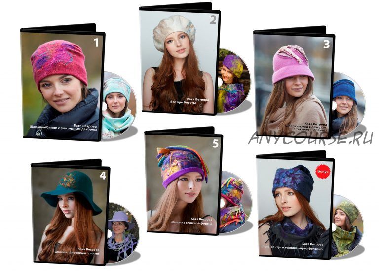 Курс состоит из шести последовательных уроков, включающих подробные объяснения и видеоинструкции по созданию разных моделей головных уборов в технике мокрого валяния.