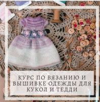 - Курс будет включать модели платьев, сарафанов, туники, пальто, болеро - все то, что так идёт куклам и мишкам-девочкам. По вашим просьбам я включила в курс модели, связанные не только спицами, но и крючком. Отдельное занятие будет посвящено декорированию одежды вышивкой.