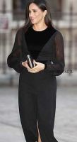 ? Платье прилегающего силуэта, длиной до середины голени (вариант-1) или до середины бедра (вариант-2), с отлетной подкладкой. Перед и спинка с вертикальными талиевыми вытачками. Лиф переда имеет декоративно-конструктивное членение – нагрудную треугольную кокетку, которую можно выполнить из материала-компаньона. Рукав втачной, клёш, со сборкой по окату и низу, на притачной манжете с пуговицей. Платье вариант-1 по центральному шву переда имеет разрез с притачной шлицей-складкой. Застежка в среднем шве спинки на потайную тесьму молнию 50-55 см.
