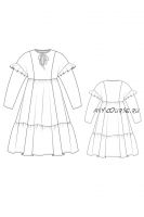 Нижний ярус юбки для шифона/батиста кроится из 4х частей во всю ширину материала, для более плотных материалов кроить из 3х частей. Уменьшение сборки влечет уменьшение расхода материала. От нижнего яруса юбки можно отказаться, удлинив клинья.