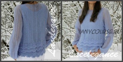 У пуловера 2 ряда оборок, еще 2 ряда пришиты к нижней майке. В описании есть инструкция, как сделать пуловер с 4-мя рядами оборок.