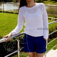 Пуловер Millefolium с рукавами реглан и застёжкой на спине связан сверху вниз на круговых спицах.