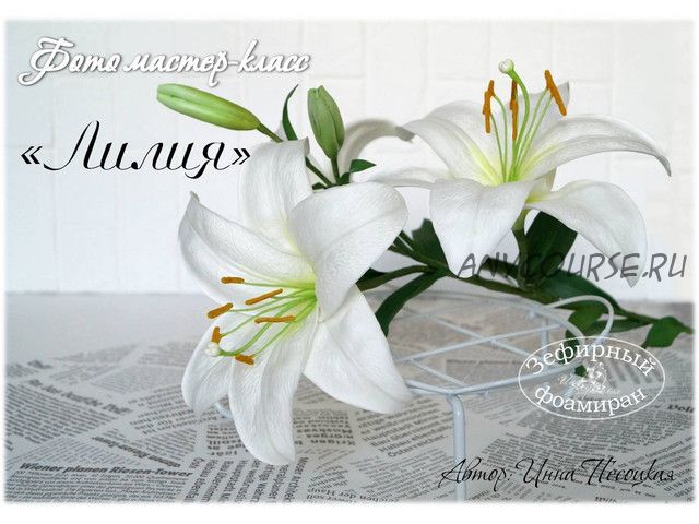 Фото мастер-класс посвящен созданию веточки цветов и бутонов лилии из 'зефирного' фоамирана (зелень - иранский фоамиран). Лепестки лилии получаются легкими, гибкими и слегка блестящими, подобно живому цветку))) А бутоны очень реалистичными.