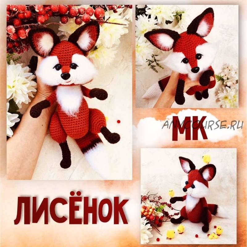 При вязании из рекомендованной пряжи размер Лисёнка получается 30 см.