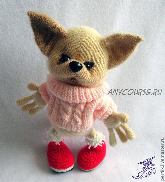? За счёт проволочного каркаса внутри передних и задних лапоке может позировать. В зависимости от толщины выбранной пряжи, готовая игрушка должна получиться 20-30 см.