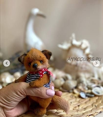 Лисёнок полностью подвижен, голова и лапки на шплинтовом креплении. Тонирован маслом и пастелью. Если у вас нет желания наносить тонировку маслом, можно белые части на теле у лисёнка попробовать вывязать, либо просто оставить их рыженькими , в таком виде он тоже очень милый.