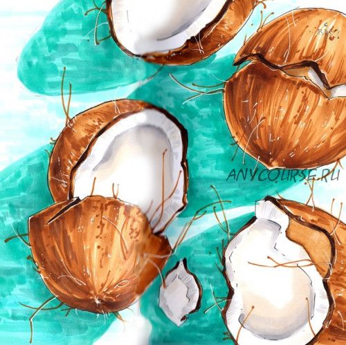 [Lubov Druma Art School] Видеоурок «Кокосы» маркерами (Любовь Дрюма)