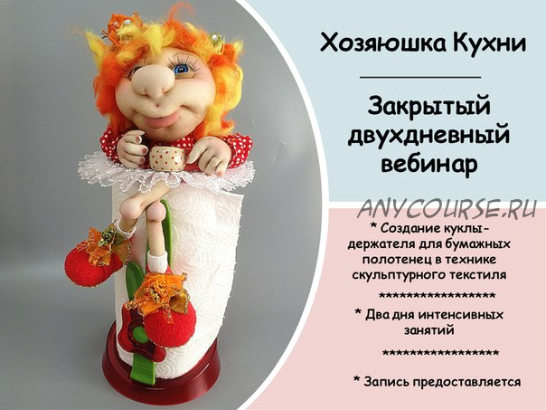 Видео мастер-класс «Хозяюшка кухни» - запись живого закрытого вебинара в удобном варианте пошаговых уроков. Больше не нужно “пролистывать” всё видео в поисках нужного отрывка - весь курс разбит на короткие и понятные уроки по темам!