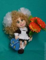 Маленькая очаровашка с кудряшками. Кукла порадует как настоящих первоклашек, так и выпускниц. Школьная форма прошлых лет - с фартуком и бантами - ностальгия по ушедшим школьным годам.